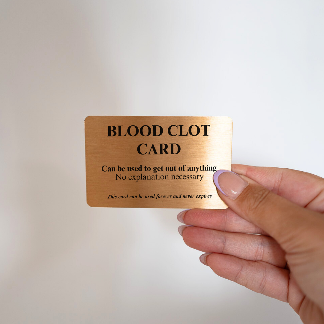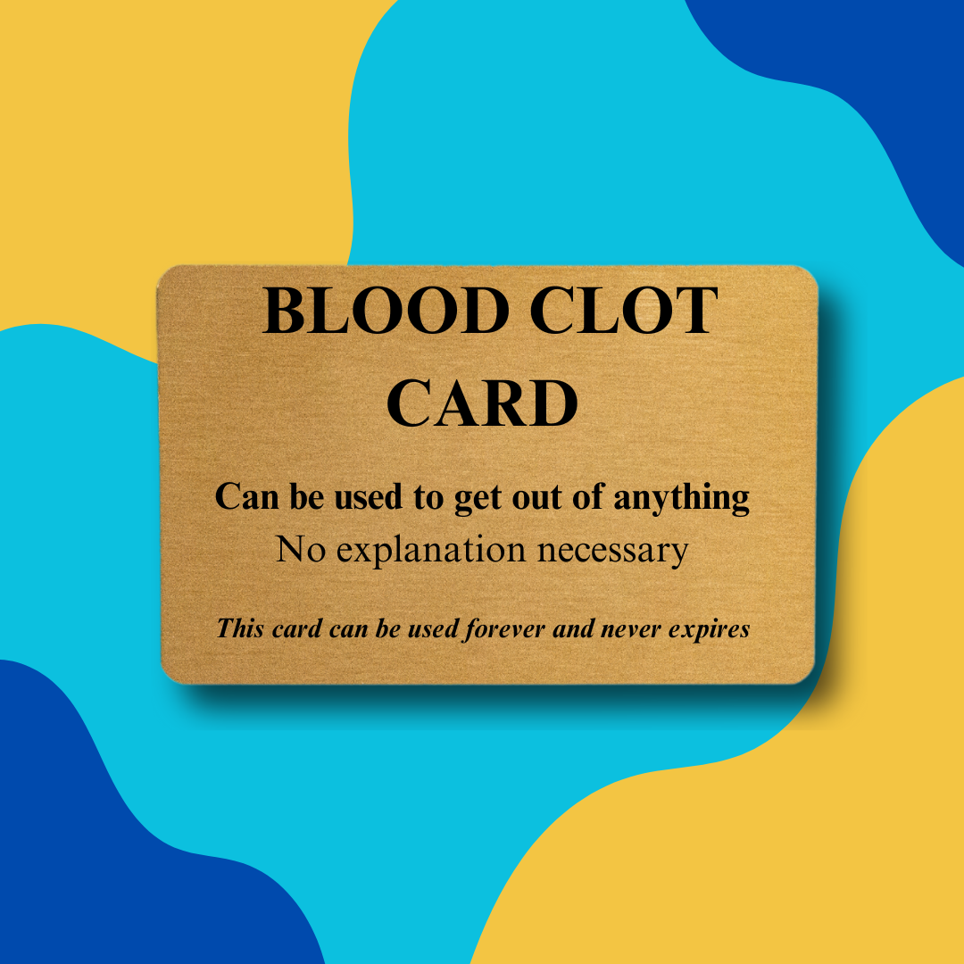 Blood Clot Card – The Perfect Tongue-in-Cheek Gift. Funny gold wallet card, cheeky humour gift and quirky keepsake for yourself or friend.