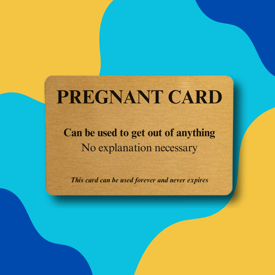 This Pregnant Card is the ultimate tongue‑in‑cheek gift for anyone who could use a little humour in the chaos of everyday life. Whether you’re slipping it into a greeting card, sending it in the post, adding to a hamper or presenting it as a playful token, this card gives the recipient the physical ability to officially “Pull The Pregnant Card ”