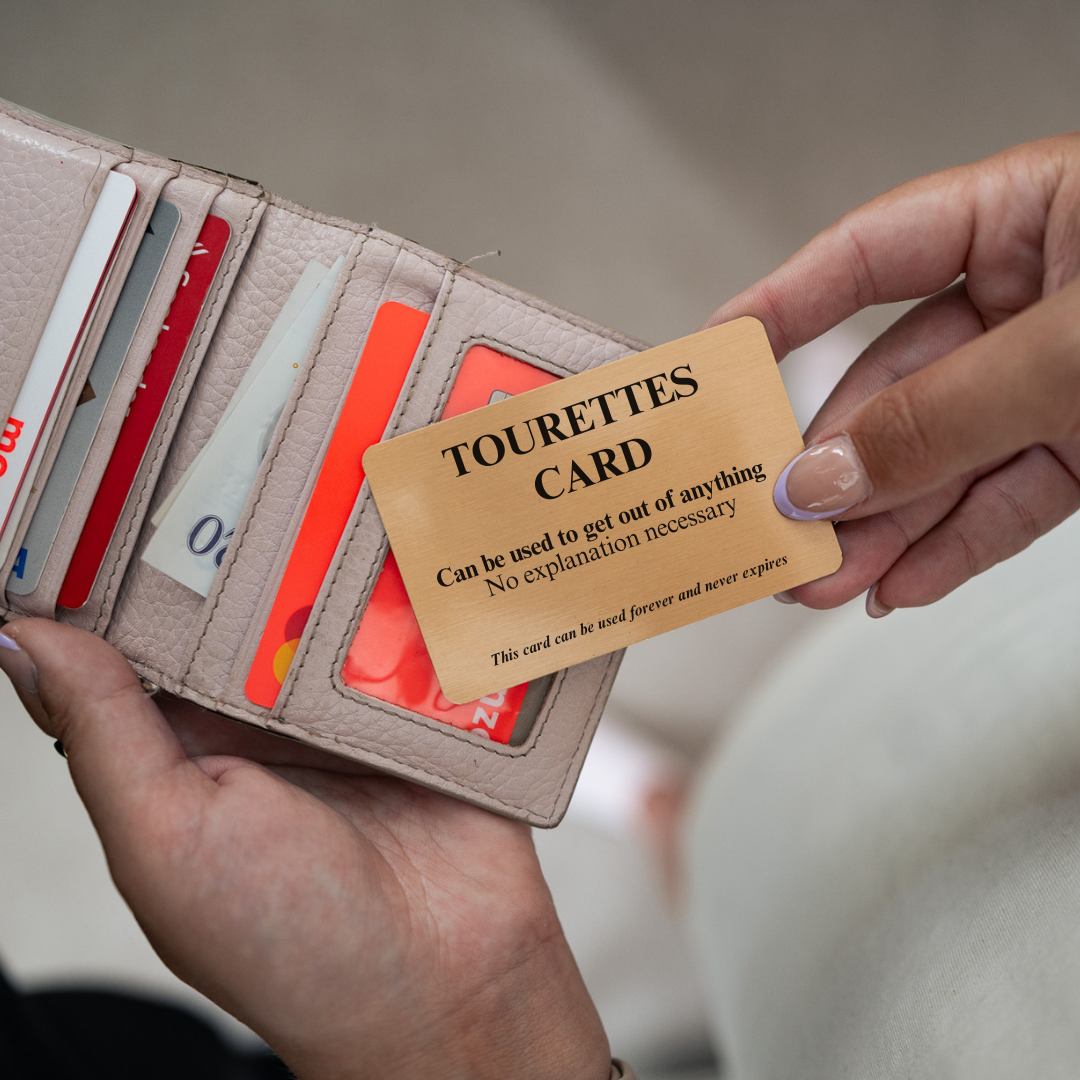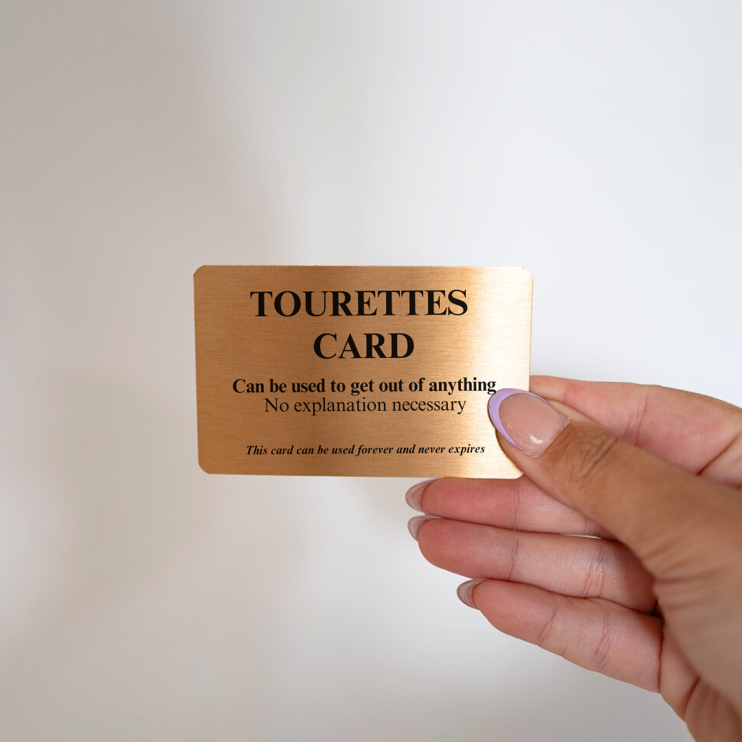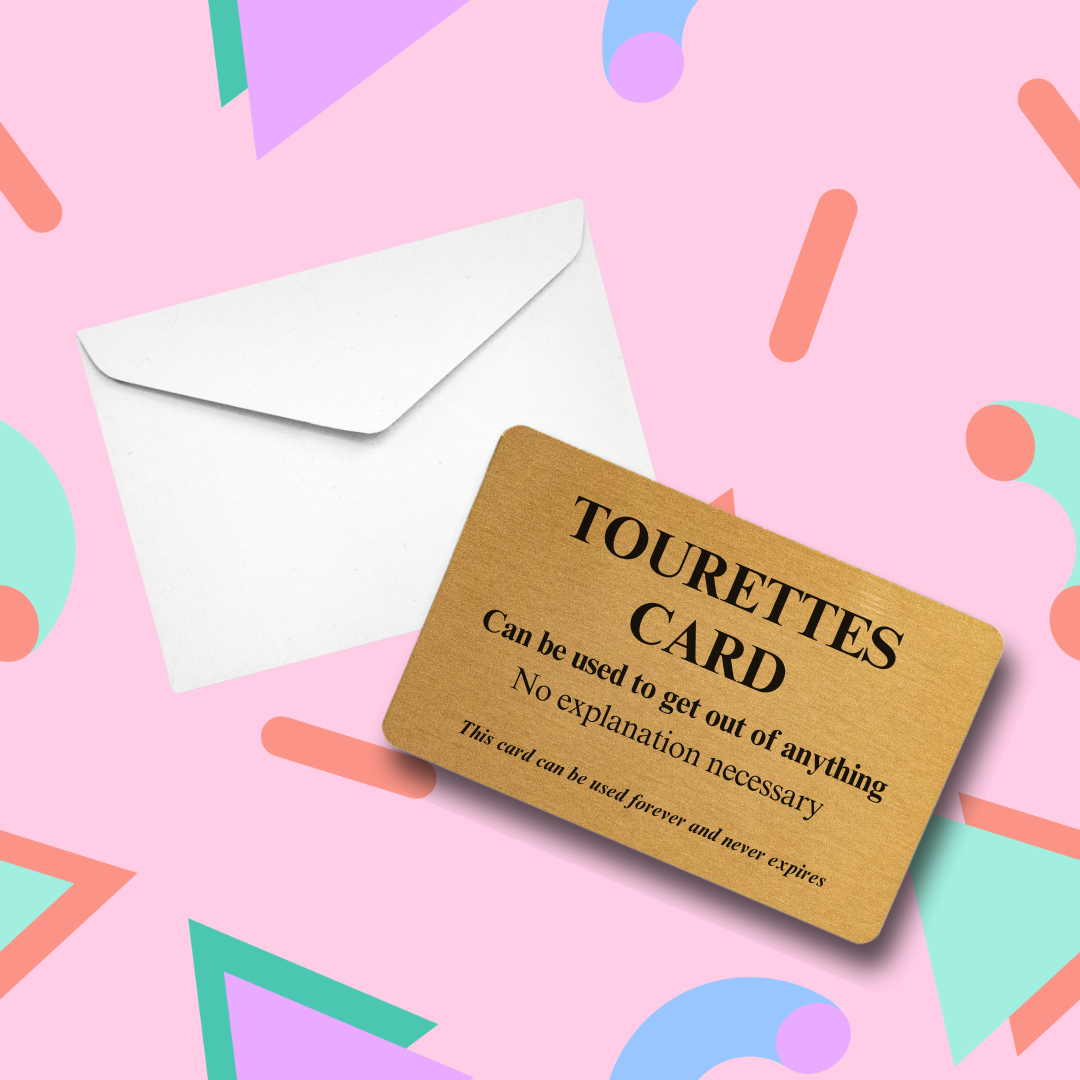 Tourettes Card – The Perfect Tongue-in-Cheek Gift. Funny gold wallet card, cheeky humour gift and quirky keepsake for yourself or friend.