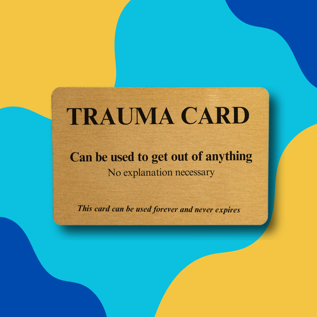 The Trauma Card is more than just a novelty—it’s a keepsake, a conversation starter, and a smile waiting to happen. Our growing range of cards gives people a way to embrace humour, lighten life’s load, and get out of anything (well… almost anything).
